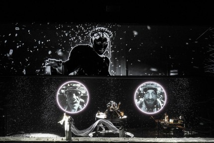 Сценическое пространство, созданное режиссёром в соавторстве с Владом Огаем, обретает осязаемость в видео-миражах Ильи Шагалова, акустической топографии метели Вячеслава Касьянова и световом дизайне Сергея Кучара. Видеотрансляции Фрола Подлесного размывают границы между физическими телами актёров и их изображениями.