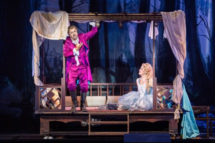 Мизансцены тоже на редкость узнаваемы: вы словно переноситесь во времена, когда в оперном театре не было ещё не только Бийейто, Чернякова и Коски, но и Дзеффирелли и Стрелера даже ещё не было. Актерское прочтение отдано полностью на откуп певцам, которые перевоплощаются в оперных персонажей с тем же необходимым азартом, с каким дети в отсутствие взрослых примеряют чужие вещи. Местами это было забавно, местами создавало приподнятое настроение.