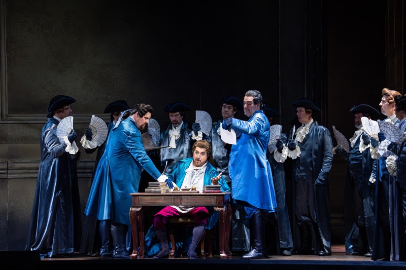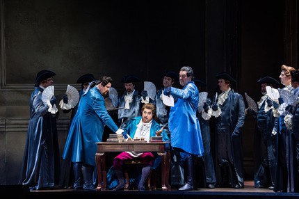 Венгерская государственная опера в сезоне 2024/25 возобновила спектакль Фабио Черезы по опере Джузеппе Верди «Бал-маскарад», впервые представленный в 2018 году. Это одна из тех репертуарных работ, на которые можно водить детей, несмотря на наличие в сюжете и на сцене агрессии, драк: это прочтение ясно и наивно. Здесь нет радикальных режиссёрских жестов, сценография Тициано Санти создаёт театральную иллюзию исторических локаций: кладбище, дворцовые интерьеры и даже китайский салон для курения опиума радуют глаз своей иллюстративной театральностью. Костюмы Джузеппе Палеллы добавляют красок в этот карнавальный фейерверк.