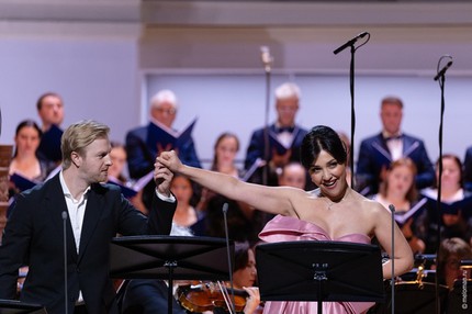 При уверенном уровне профессиональной добротности исполнения его стремление к утонченно-изысканным эмпиреям лирической оперы было осязаемо, но в итоге осталось всё же недостижимым. Как постановка Андрейса Жагарса предстала в свое время компромиссом театральным, так и это концертное исполнение явилось компромиссом музыкальным, несмотря даже на то, что в обсуждаемом проекте приняла участие связка брендовых отечественных коллективов – Государственного академического симфонического оркестра России им. Е.Ф. Светланова (художественный руководитель – Филипп Чижевский) и Государственного академического русского хора им. A.В. Свешникова (художественный руководитель – Екатерина Антоненко).