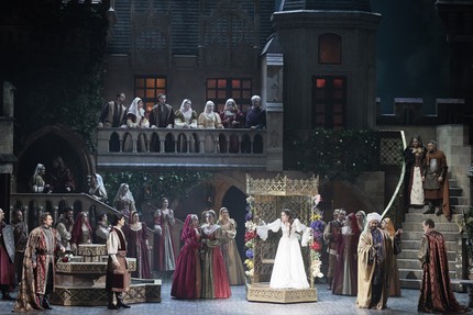 Есть эстетически притягательный монументальный антураж интерьера средневекового замка, есть вполне продуманные, умело разведенные мизансцены, есть приятно радующие глаз костюмы, стилизованные под исторический крой – есть всё, что заведомым бальзамом ложится на сердца и души широкой публики, и этого, в принципе, уже немало! Есть сказка, есть нехитрый сюжет, есть красота и мелодический шарм музыки. Помните, как у Пушкина про его героя Онегина: «Чего ж вам больше? Свет решил, / Что он умен и очень мил». Но то же самое решительно можно сказать и о новой постановке «Иоланты», глубинные пласты которой – и культурологические, и психологические – бесхитростно остались за кадром…