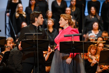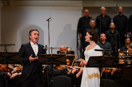 Два вечера абонемента Московской государственной филармонии «Шедевры мировой оперы» состоялись в Концертном зале им. П.И. Чайковского 6 и 8 ноября, и их особенностью стало то, что даны они были труппой Пермского государственного академического театра оперы и балета им. П.И. Чайковского – симфоническим оркестром, хором и солистами. При этом козырные карты в главных теноровых партиях разыграли приглашенные артисты. В опере Верди «Риголетто» лирический тенор Алексей Татаринцев, солист Московского театра «Новая Опера», исполнил партию Герцога Мантуанского. А в опере Леонкавалло «Паяцы» хорошо знакомый москвичам драматический тенор Михаил Пирогов, в настоящее время солист Михайловского театра (Санкт-Петербург), исполнил партию Канио.
