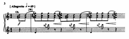 Развитие от Танца кормилиц до Танца кучеров и конюхов идет по нарастающей. В Танце кормилиц Стравинский использует параллелизмы тритонов, вносящие преимущественно фонический эффект (пример 3), а в пляске кормилиц с кучерами и конюхами, являющейся кульминацией сцены, он прибегает к максимальной интенсификации средств путем уплотнения аккордов и роста оркестровой звучности.