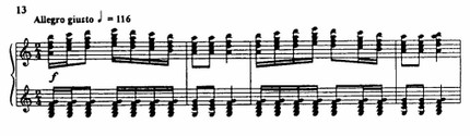 Piano Rag Music (1919) — джазовая композиция, где Стравинский, исходя, с одной стороны, из ритмической четкости джазовой импровизации, а с другой — из моторности исполнительской техники, в каденции упраздняет тактовую черту — она становится ненужной (!): «вместо ритма есть счет» (Стравинский).