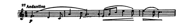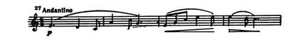 Столь же прост и скуп динамический план пьесы, построенный на чередовании и совмещении (при двухголосии) различных оттенков звучности piano с постоянным подчеркиванием «вилочками» октавного восхождения мелодии в третьем такте темы.
