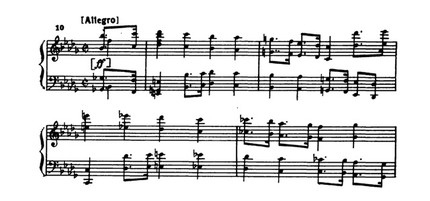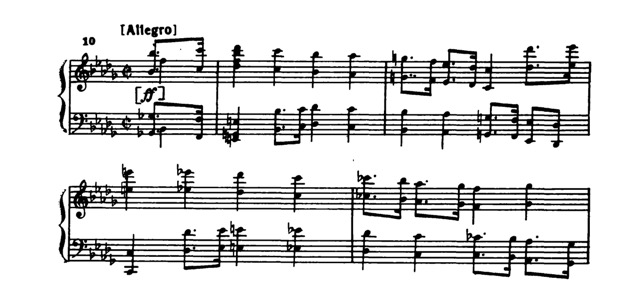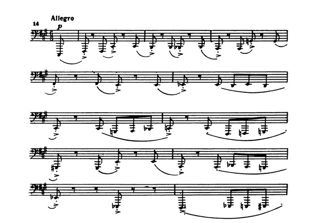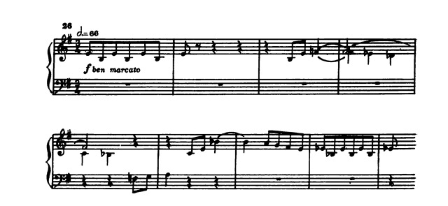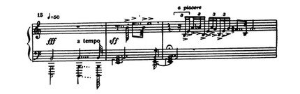 Появившаяся уже в первой пьесе качающаяся фигурация превращается здесь в диссонирующие стреттные наслоения: