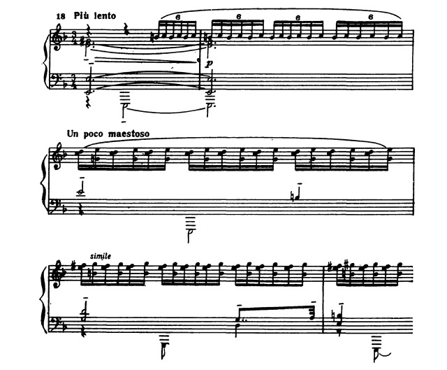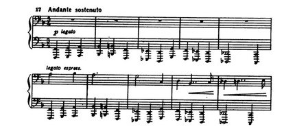 Мучительно и полно огромной внутренней значительности нагнетание восьмых сопровождения и шестнадцатых мелодической линии, неизменно произносимых по два звука (словно исполняемых на один смычок). Преодолевая постоянное сопротивление, шаг за шагом взбирается тема все выше и выше, время от времени отбрасываемая назад резкими пунктирными толчками: