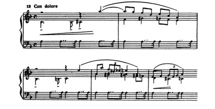 Однако созерцательность музыки оказывается обманчивой: размышления композитора, продолжая единую психологическую линию развития, постепенно приводят ко все более острым драматическим коллизиям. Основную роль в динамизации музыки играет нагнетание первоначальных упруго-восходящих поступенных интонаций, а также появление формул «качающихся» восьмых (отметим, что оба эти элемента обретут большое конструктивное значение в дальнейшем развертывании музыкальной образности).