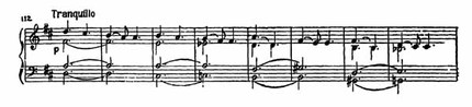 Этот прием придает особую певучесть мелодии и, сохраняя прозрачность красок, в то же время подчеркивает ее выразительное значение. Во втором проведении мелодия появляется уже в сплошном аккордовом изложении, музыкальная ткань становится более плотной; это уже сочная, насыщенная звучанием «поющая гармония»: